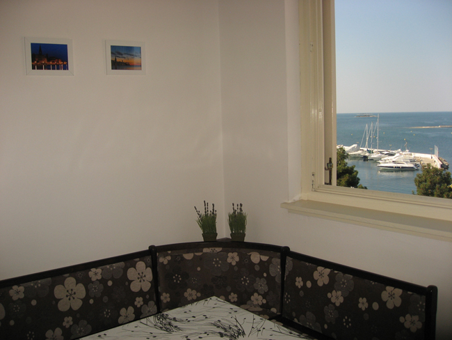 Ferienwohnungen mit einem wunderschönen Blick auf das Meer, Riviera und die Insel Sveti Nikola, befindet sich in einer attraktiven Lage im Zentrum der Stadt Porec. In der Wohnung "Nadia-Center" werden Sie sich bequem fühlen. Alles, was Sie für ihren Urlaub brauchen wie Restaurants, Kaffe Bars, Geschäfte... befindet sich in der unmittelbaren Nähe und das Meer und der Strand sind nur ein paar Minuten zu Fuß entfernt. Die Wohnung befindet sich im vierten Stock und besteht aus zwei Schlafzimmern mit Doppeltbetten, Küche mit Speisezimmer, Wohnzimmer, Badezimmer und Terrasse. Die Küche ist komplett ausgestattet (Geschirr, Kaffeemaschine Filter / Espresso, Küchenherd, Kühlschrank, Waschmaschine). Handtücher und alle nötigen Bettwäschen sind auch im Preis inbegriffen. Im Wohnzimmer steht ein SAT TV. Im Keller der Gebäude steht ein Parkplatz für unsere Gäste frei zur Verfügung.