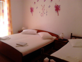 Od plaže smo udaljeni 150 m i gostima nudimo smještaj u apartmanima A5 (3+2), i studio apartmanima A2+1(a) , A2+1(b). Apartmani se nalaze na prvom katu obiteljske kuće u potpunosti su opremljeni i imaju klima uređaje i pristup bežičnom internetu.